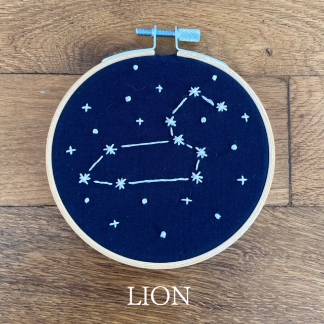 Les étoiles sont brodées sur une toile de coton de satin bleu avec un fil à broder qui brille dans la nuit. A accrocher, ou à poser elle trouvera facilement sa place dans une chambre, une entrée ou votre salon.