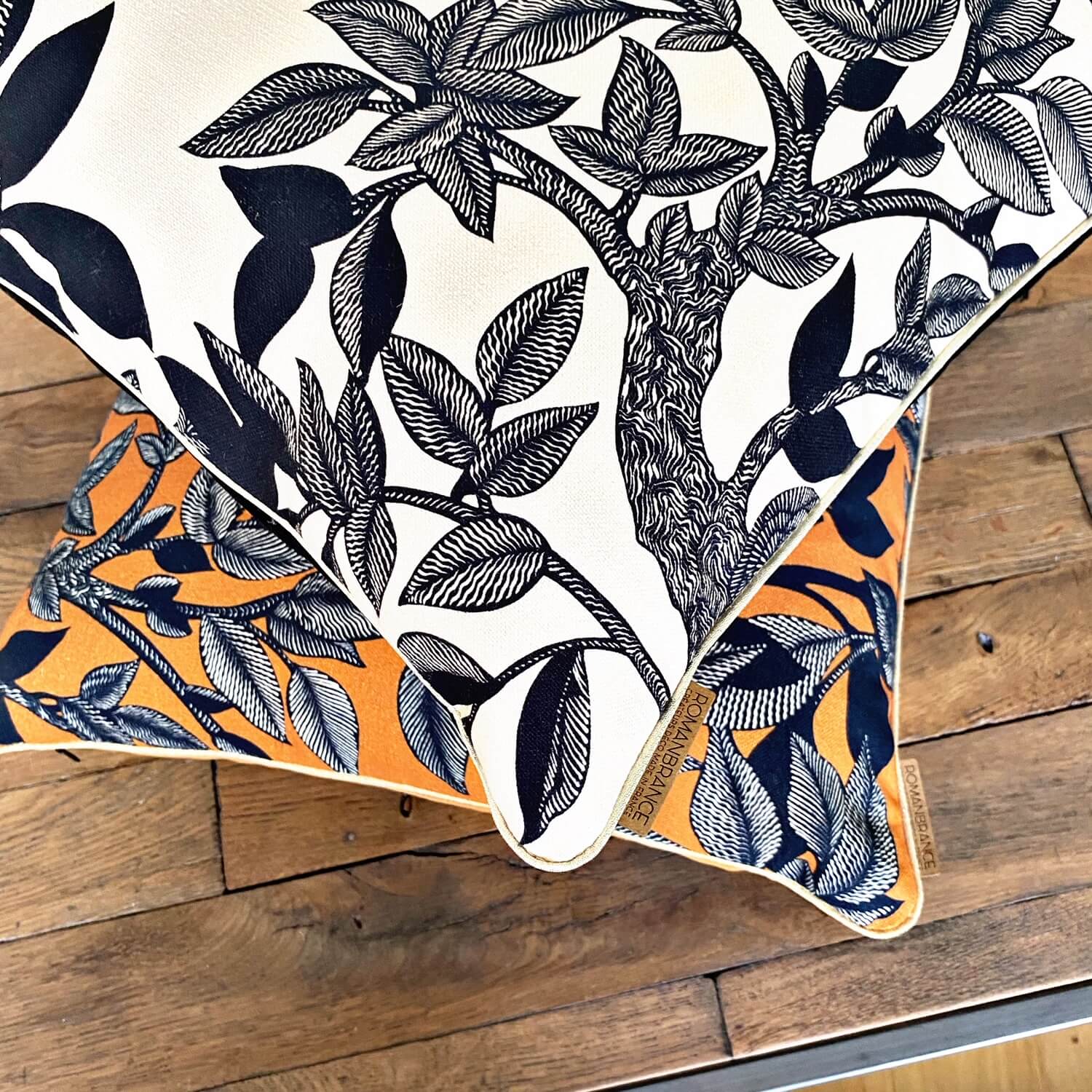 Chaque coussin est unique et le placement des motifs varie légèrement avec la représentation photographiée.