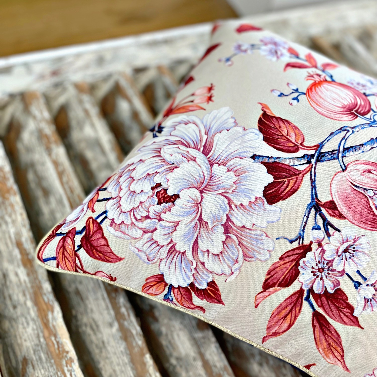 Apportez une touche d’élégance et de charme classique à votre intérieur avec notre nouveau coussin CLAUDIA. Ses pivoines aux tons rose et terracotta se marieront parfaitement a la douceur du velours de son verso.