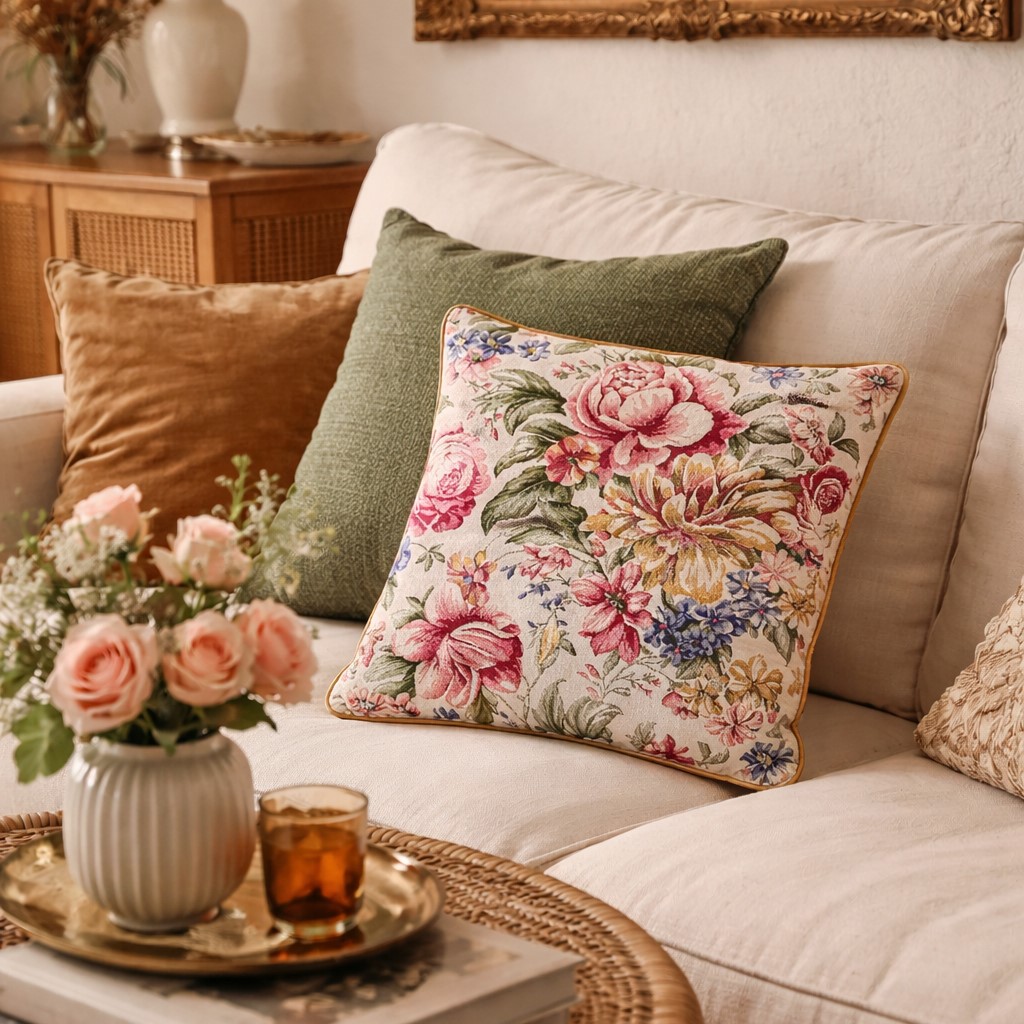 Apportez à votre intérieur une note romantique et raffinée avec le coussin JOSY. Son tissu jacquard aux motifs de fleurs anciennes évoque le charme des maisons de famille et l’élégance intemporelle des décors classiques, tout en trouvant naturellement sa place dans une ambiance chaleureuse et contemporaine.