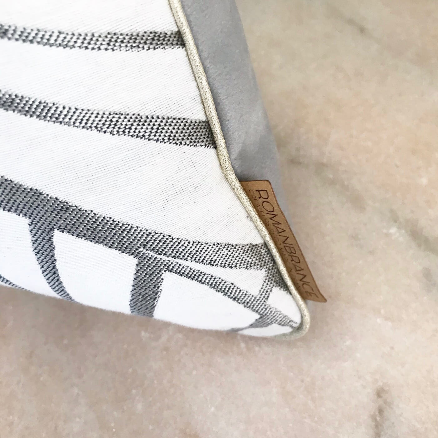 Ce coussin est joliment souligné d’un passepoil doré clair.