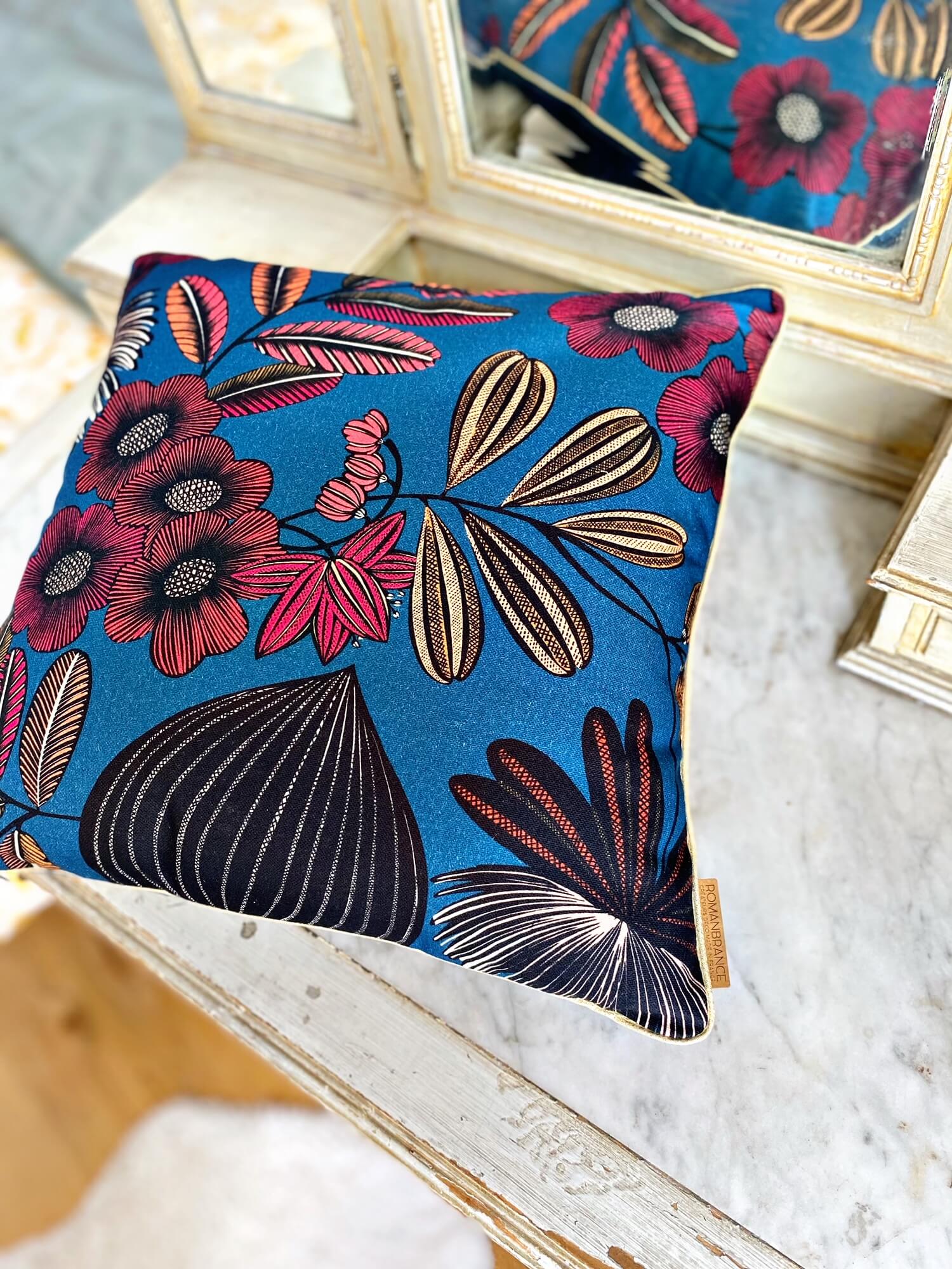 Chaque coussin est unique et le placement des motifs varie avec la représentation photographiée.
