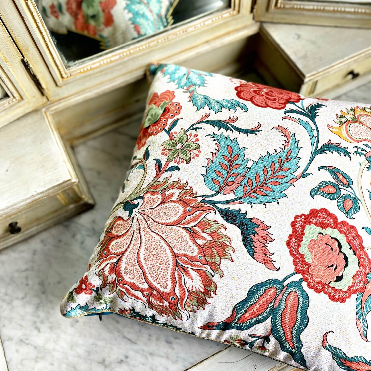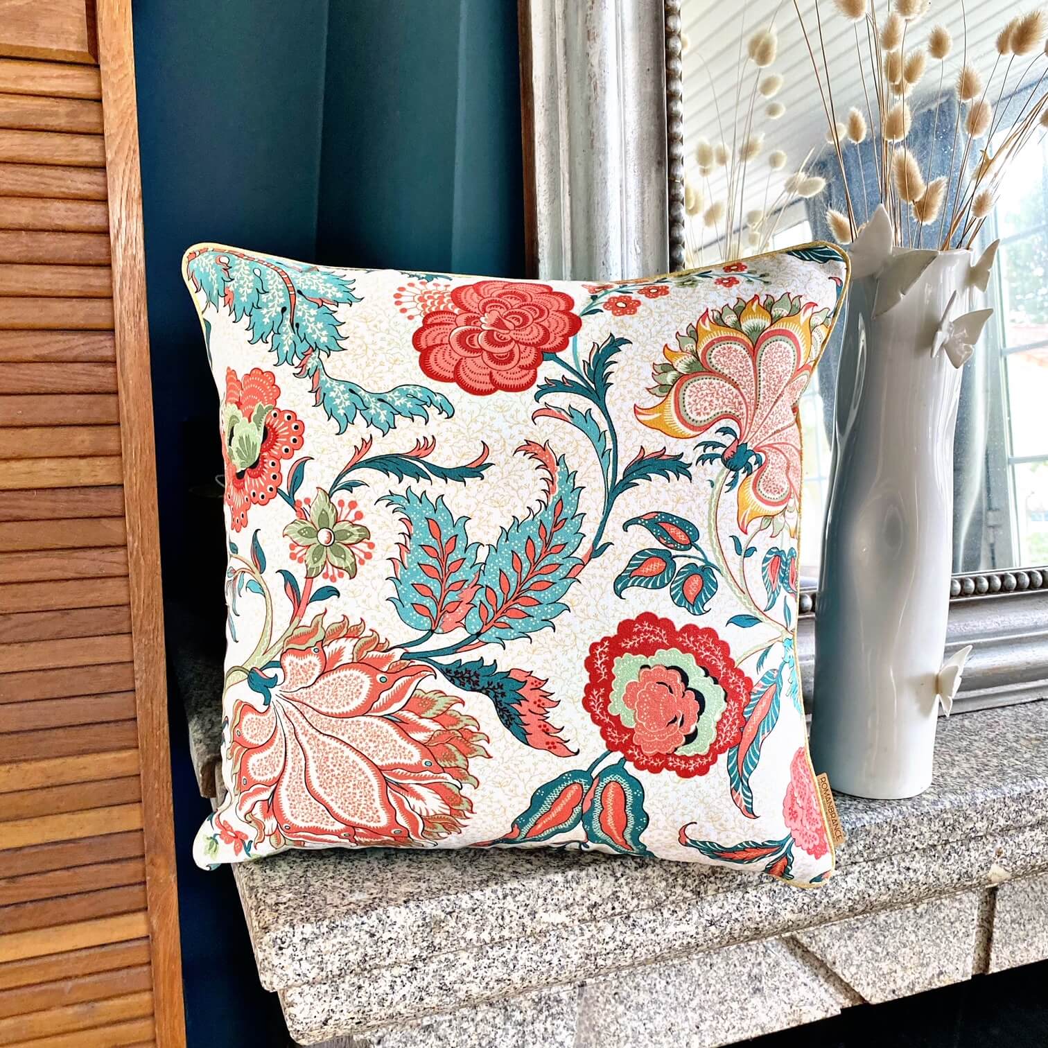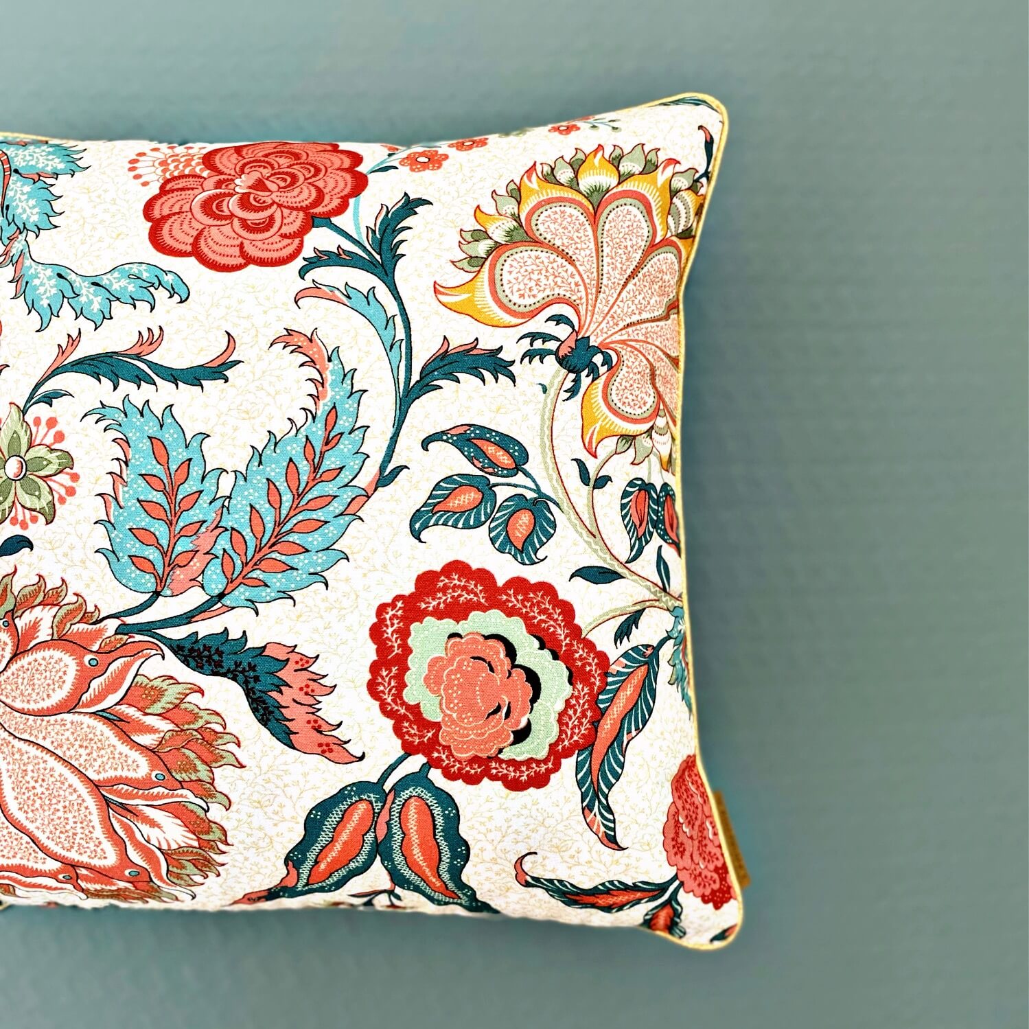 Craquez pour notre coussin SUZANNE. Ces motifs floraux colorés sur un fond crème apporteront une touche de chaleur et d’exotisme à votre intérieur.