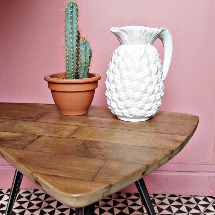 Notre Guéridon Angus s’inspire du mobilier des années 50 avec sa forme triangulaire et ses pieds compas. On adore son allure chic et vintage. Vous pouvez l’utiliser comme table basse, table d’appoint, table de chevet…