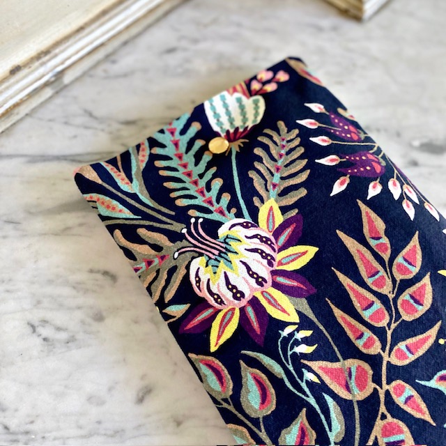 Elle est réalisée avec nos tissus d’ameublement robuste. Son intérieur est en coton noir. Elle se ferme simplement par bouton pression doré.