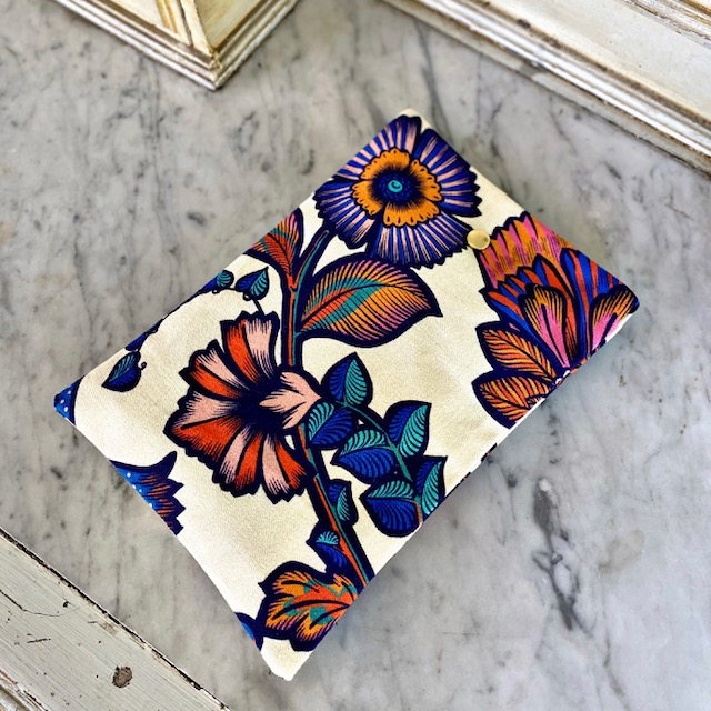 Elle est réalisée avec nos tissus d’ameublement robuste. Son intérieur est en coton noir. Elle se ferme simplement par bouton pression doré.
