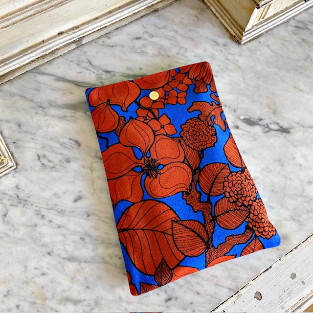 Elle est réalisée avec nos tissus d’ameublement robuste. Son intérieur est en coton noir. Elle se ferme simplement par bouton pression doré.