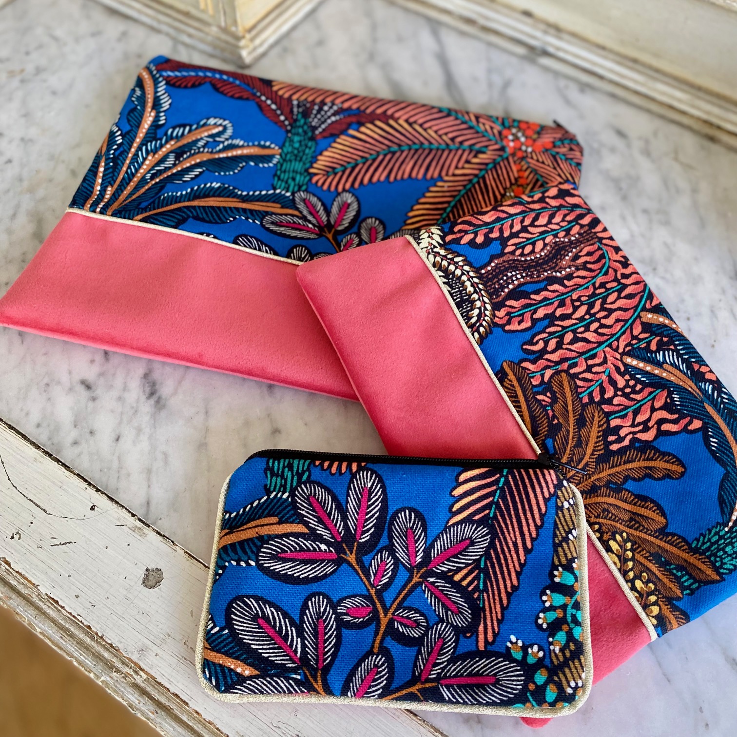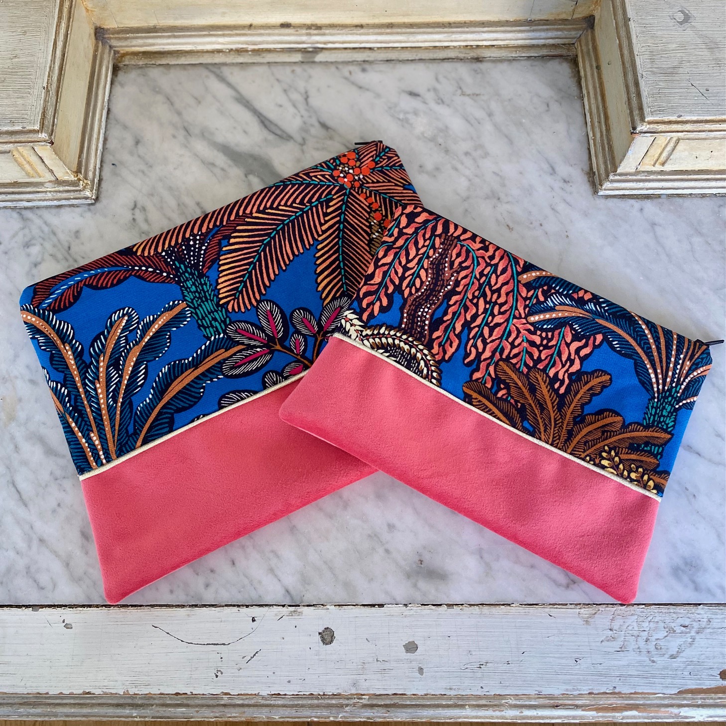 - Chaque pochette est unique et le placement des motifs varie avec la représentation photographiée.