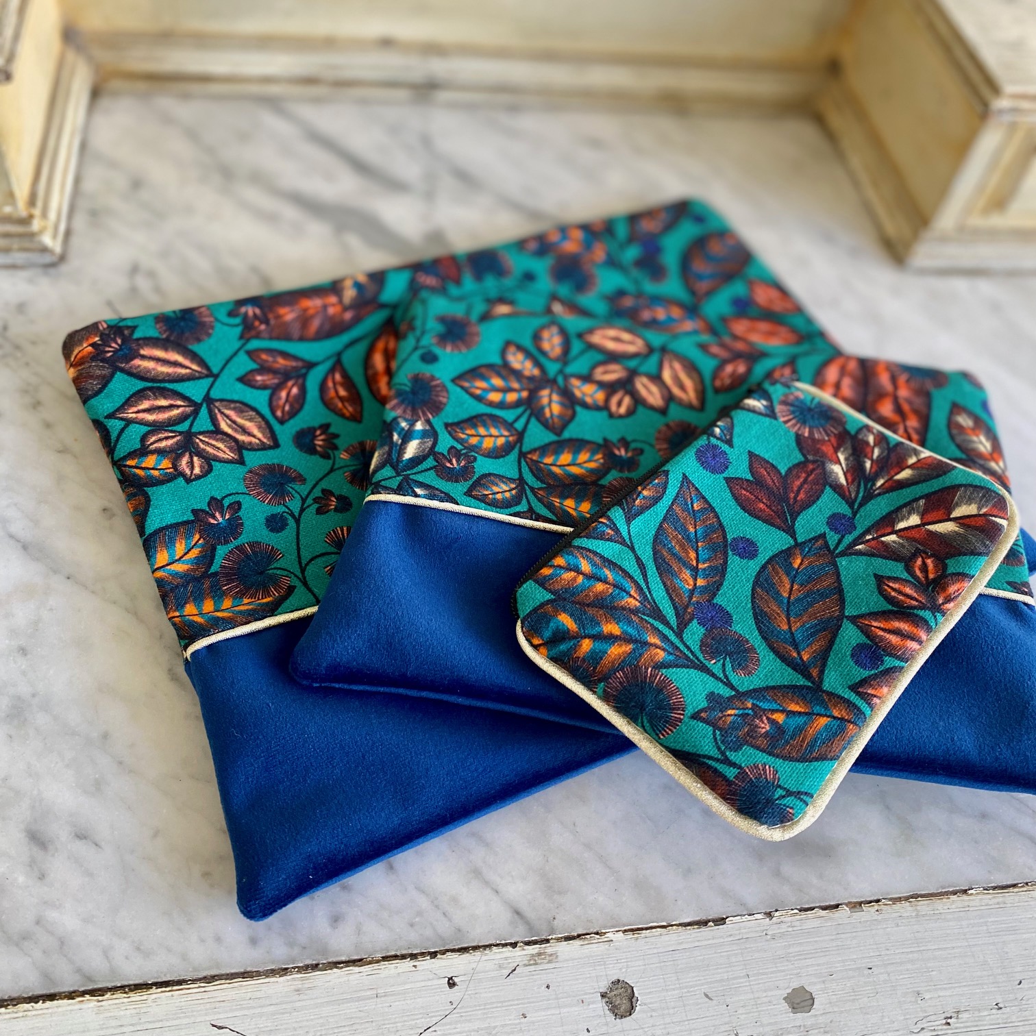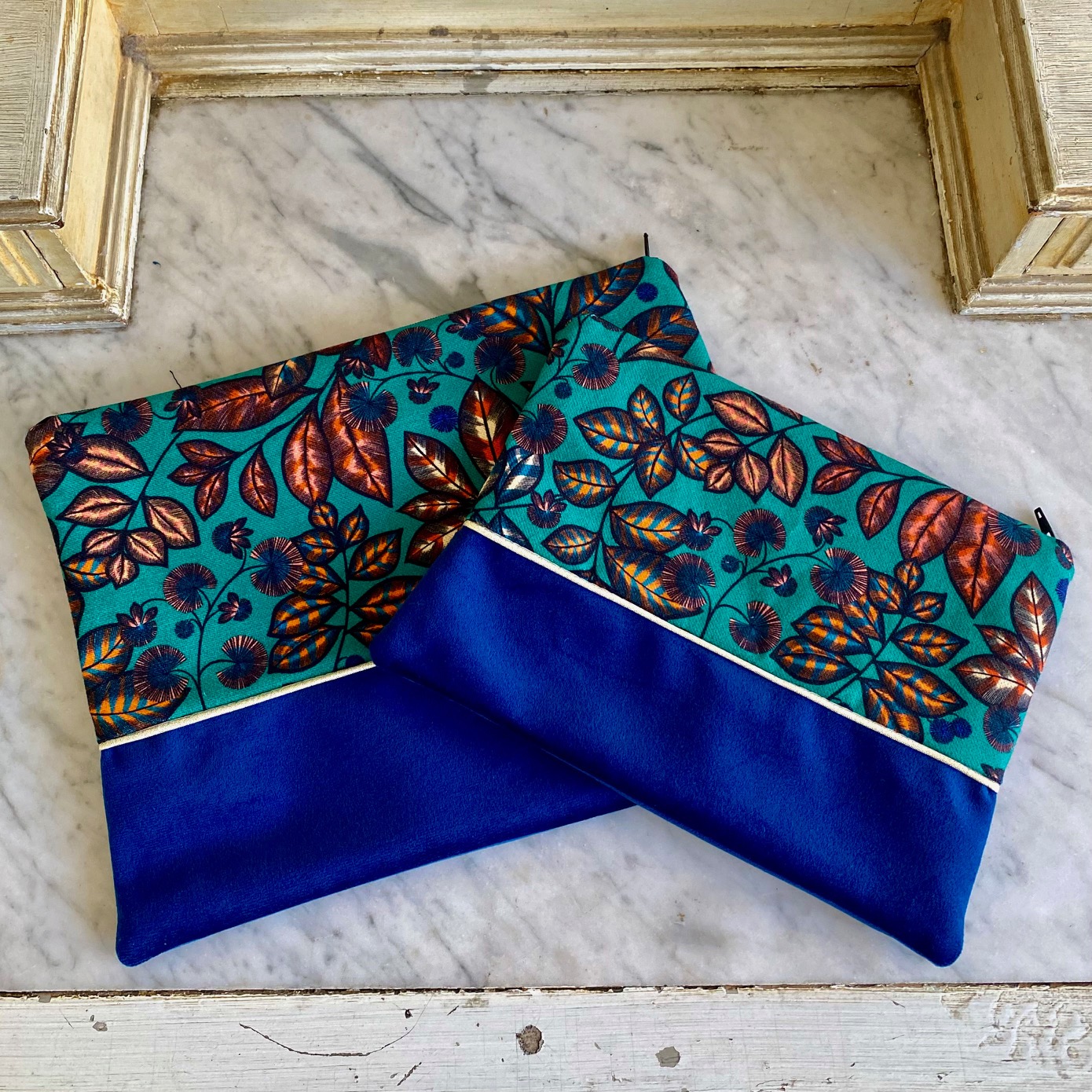 - Chaque pochette est unique et le placement des motifs varie avec la représentation photographiée.