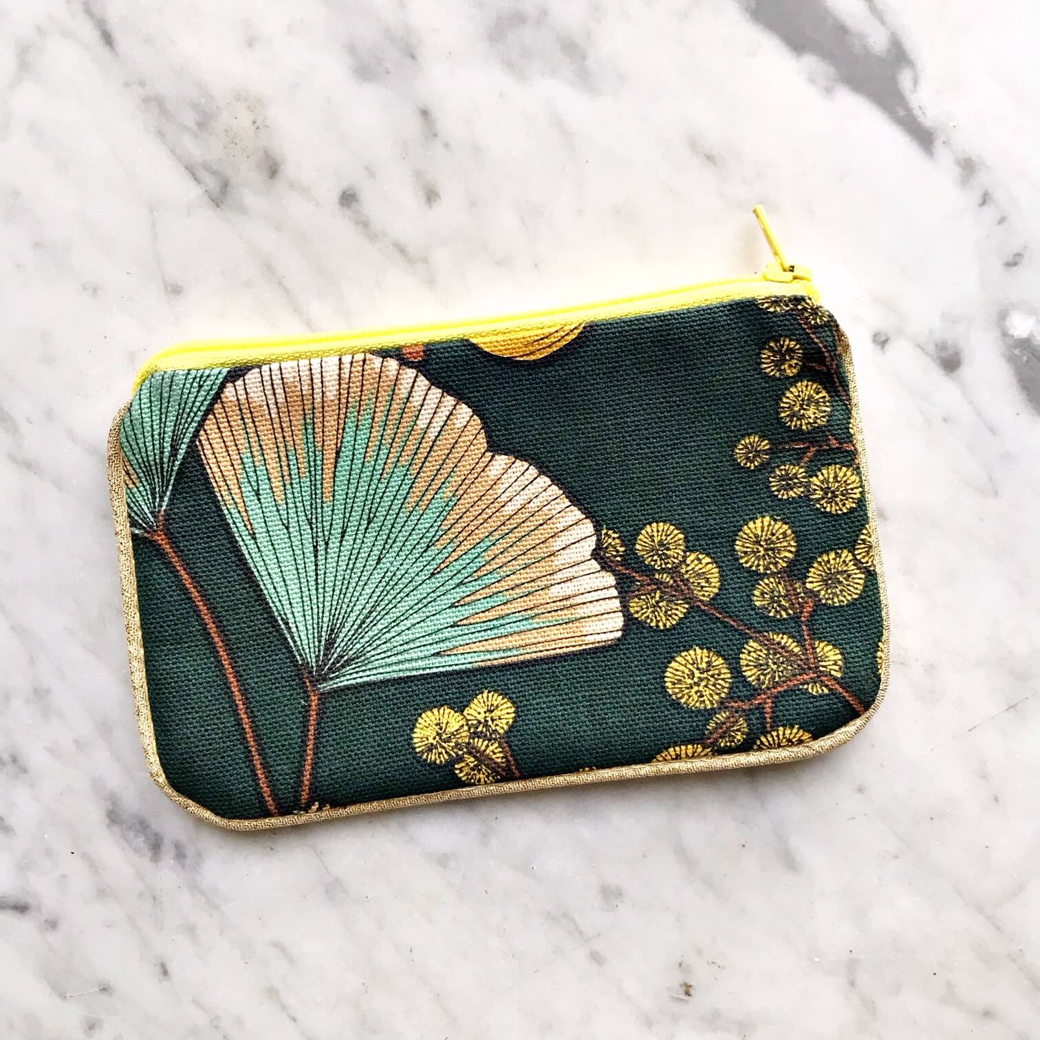 Mêmes finitions que nos coussins, une face tissus et une face velours souligné d’un joli passepoil doré.